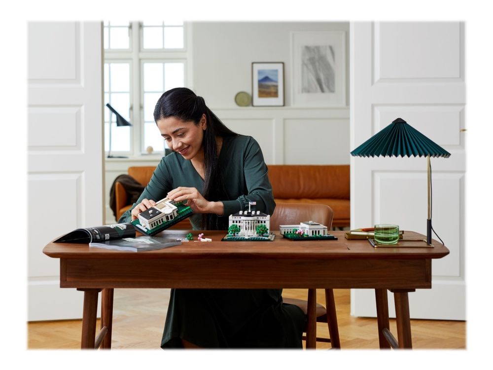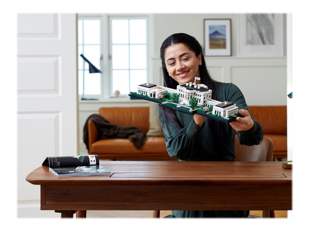 7. Settet inkluderer enkle instruksjoner som gjør at selv LEGO® nybegynnere kan kaste seg utpå. Det inkluderer også en omfattende brosjyre som forteller historien bak Det hvite hus (kun på engelsk. Last ned andre språk fra LEGO.com/architecture).