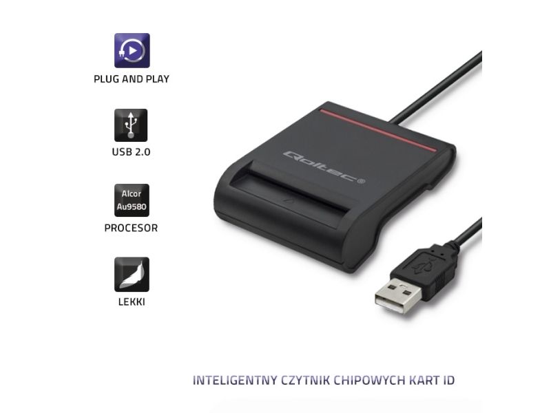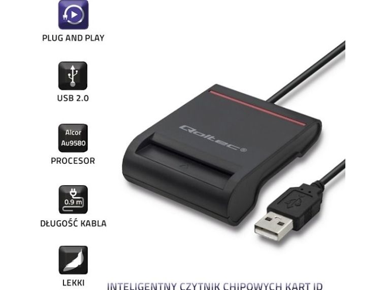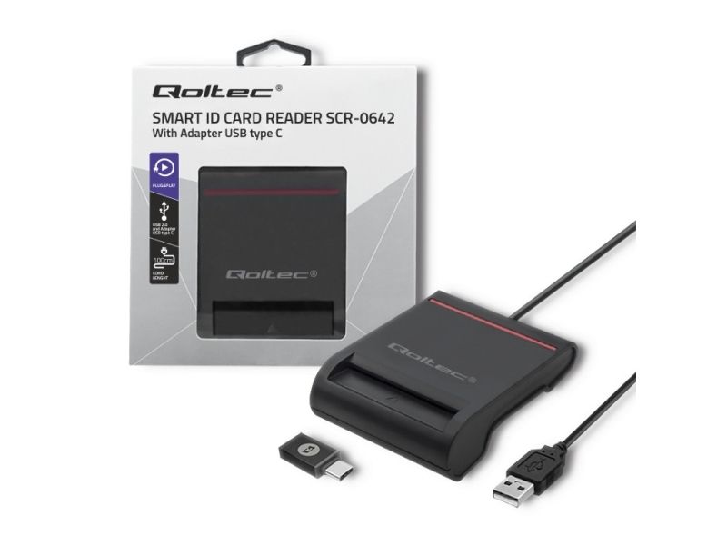 Qoltec 50642 - SMART-kortleser - USB 2.0 - svart