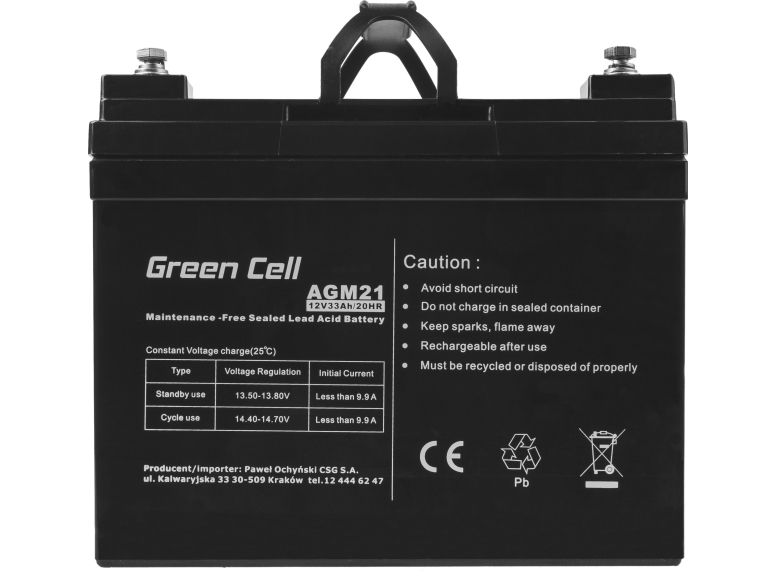 Green Cell AGM accumulator is made from high-quality materials. The device is perfect to be used heavily, but also to be used from time to time. The accumulator is based on AGM technology, which means that the electrolyte is absorbed by a fiberglass separator, preventing its leakage. This way the device can work in different positions, not just vertically. This is a perfect and much safer alternative for lead-acid accumulators.