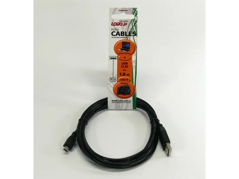 USB-kabel Logo USB-kabel (2.0), USB A M- USB mini M (5 pins), 2m, sort, Logo, pris for 1 stk.