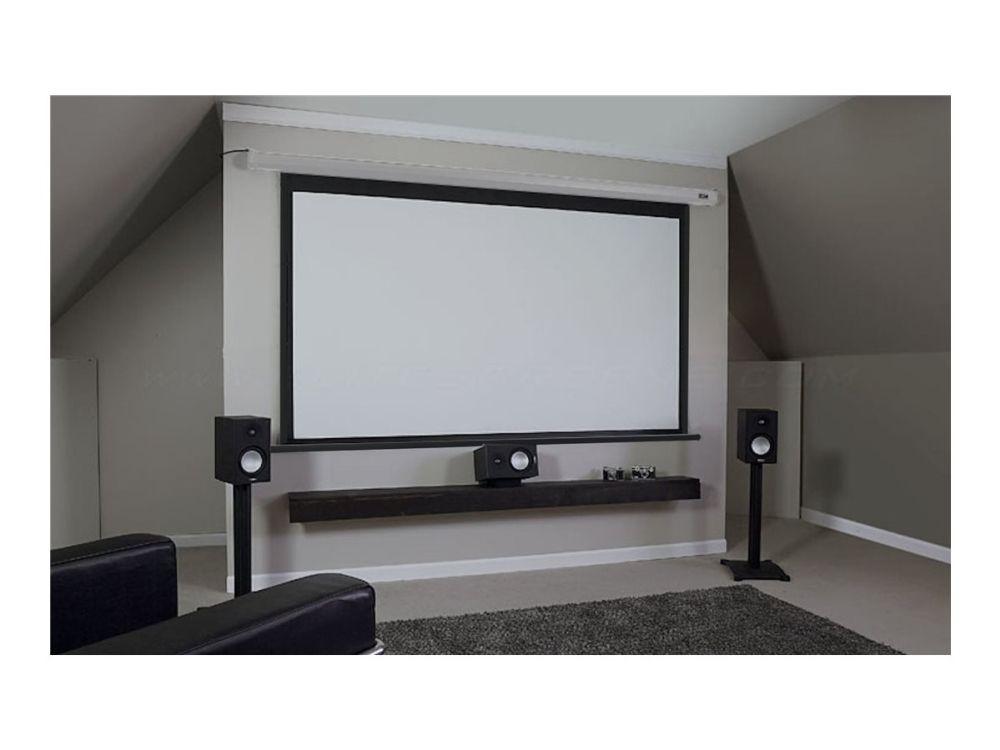 The Spectrum Series is the best option for a budget electric/motorized front projection screen. The Spectrum Series has 4 inches of top masking to complement the side and bottom borders. This provides a professional effect by properly framing your projected image.