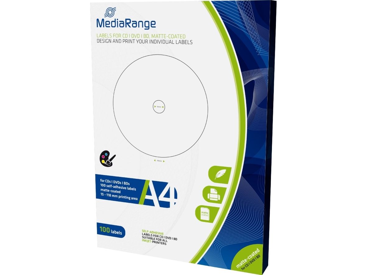 MediaRange - Hvit - CD (15 x 118 mm) 100 etikett(er) (50 ark x 2 CD/DVD etiketter