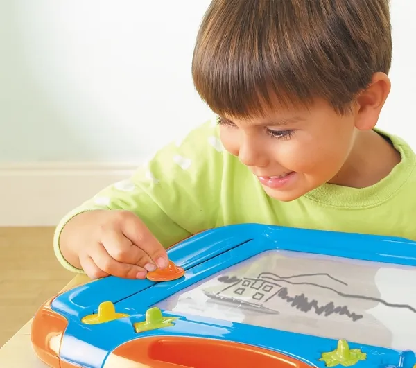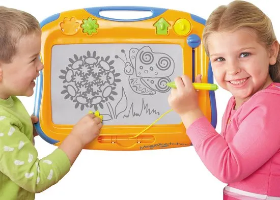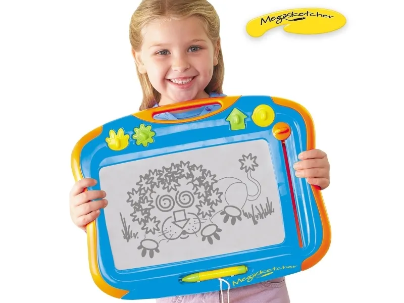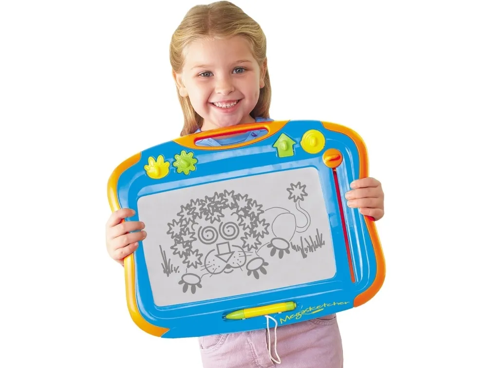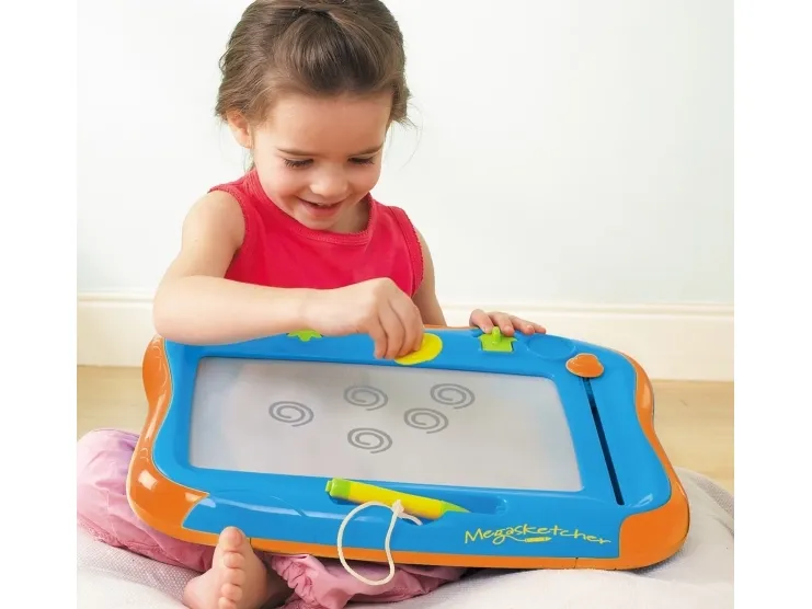The magnetic Megasketcher drawing board has a unique special screen that allows budding artists to draw clear, crisp pictures.