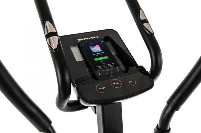3 knapper gjør bruken av datamaskinen enkel og intuitiv. En hylle for en mobil enhet lar deg ha en smarttelefon tilgjengelig for å hele tiden være online og bruke treningsapper.