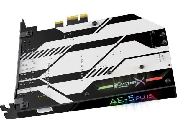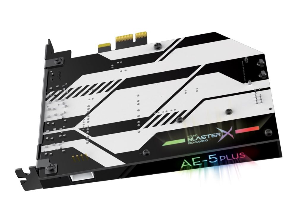 The Sound BlasterX AE-5 Plus is a perfect convergence between aesthetics and performance that features a SABRE ultra-class hi-res PCI-e gaming sound card and DAC with customizable RGB LEDs on its body, and comes with an included RGB LED strip.