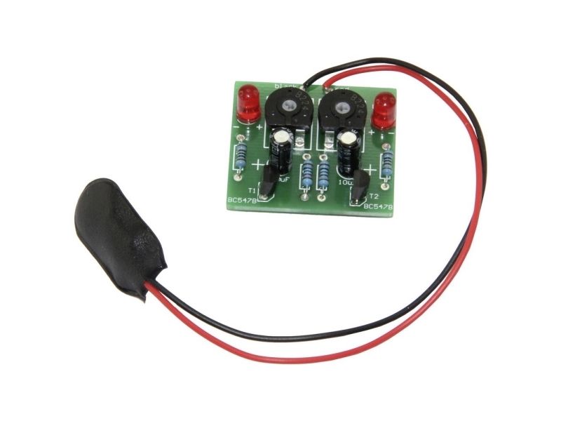 Loddebyggesæt blinkende LED'er Driftsspænding 9 V (9 V-batteri)Strømforbrug: ca. 100 mAVanskelighedsindeks: EnkeltMonteringstid: 15 - 30 minutterAldersanbefaling: Fra 10 år (under opsyn af en voksen). Med dette loddebyggesæt bliver 2 røde 5 mm LED blinkende, og lyser således skiftevis. Blinkhastigheden kan indstilles individuelt for hver enkelt LED. Printkortet blinkende LED'er egner sig super til eksperimenter, som lodde-øvelse eller for eksempel til lysfunktioner inden for modelbyggeri, som f.eks. Andreaskryds og så videreTakket være den detaljerede vejledning i farver og den medfølgende hjælp til bøjning af modstande egner loddesættet blinkende LED'er sig fremragende til begyndere, begyndere og avancerede brugere.Som strømforsyning anvendes et almindeligt 9 V batteri (medfølger ikke).