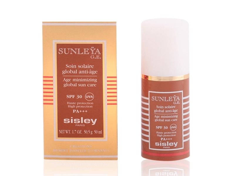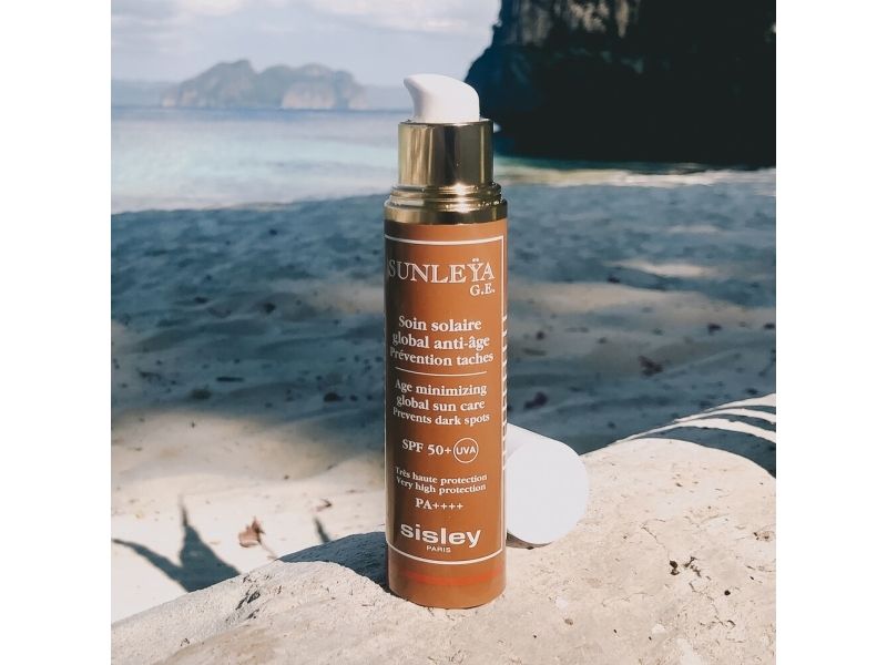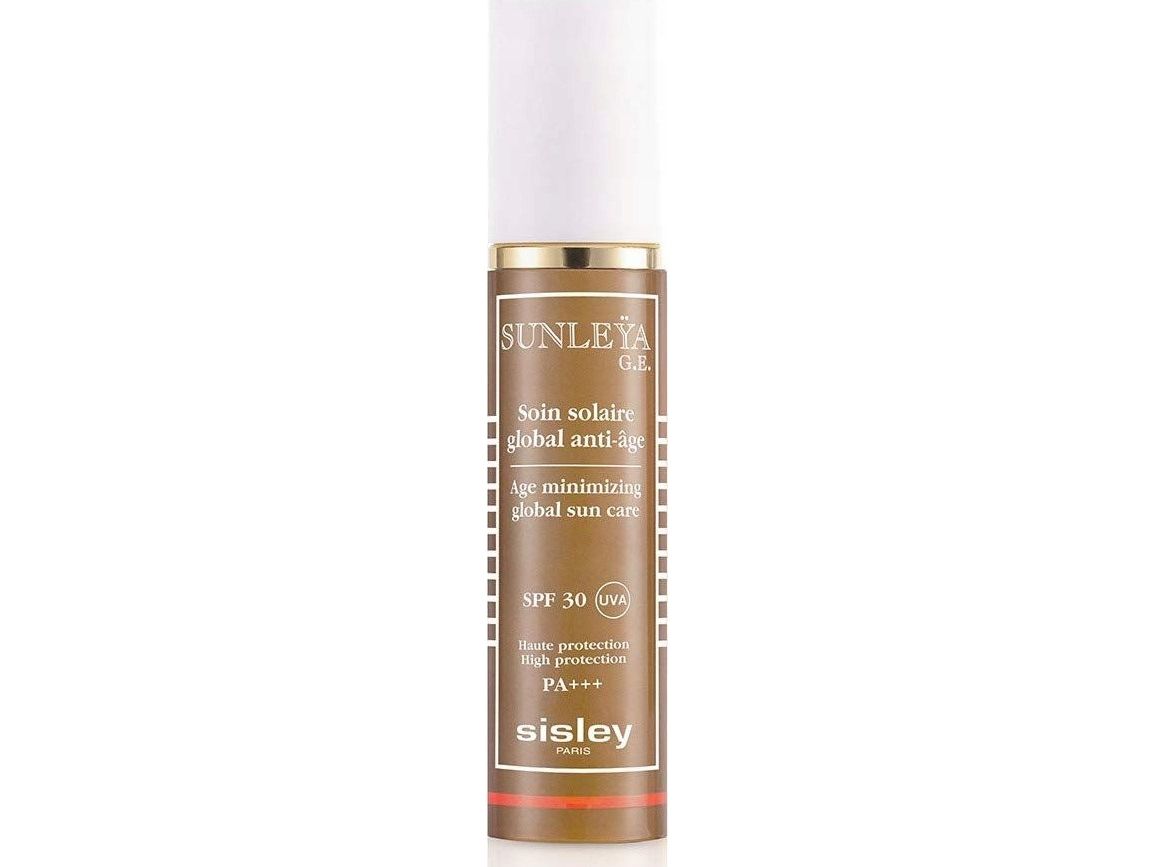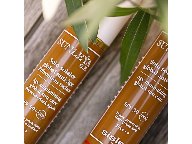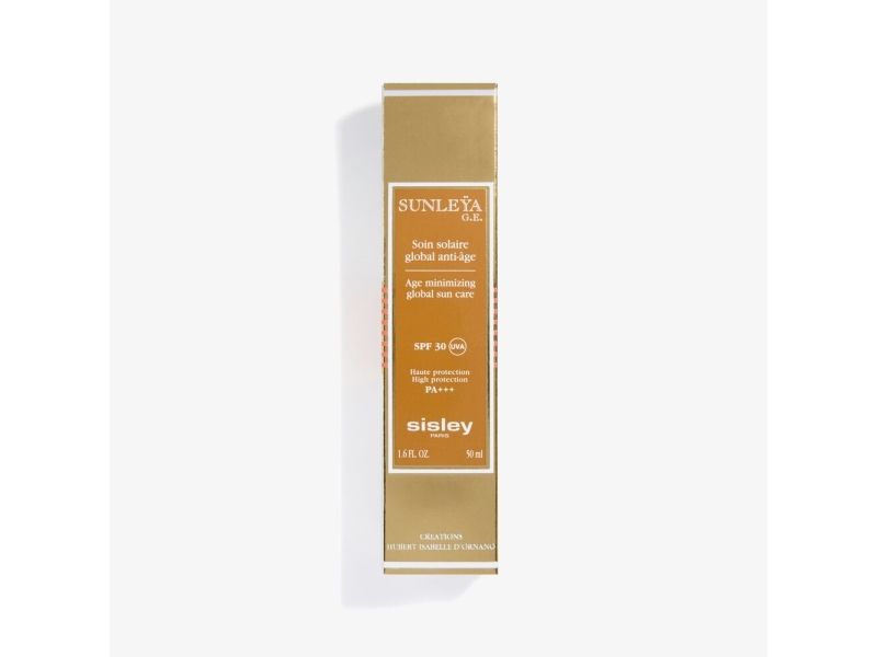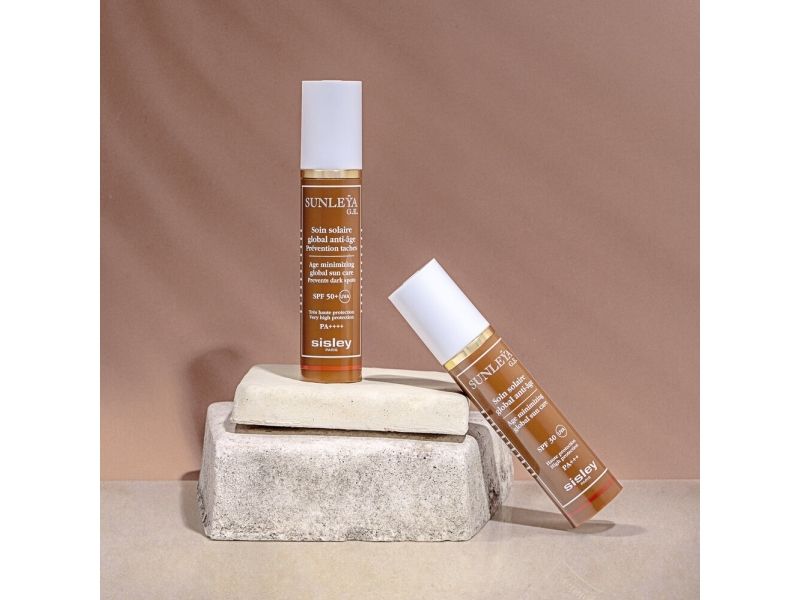 Sunleÿa G.E. Age minimising global sun care SPF30 acts like a veritable anti-aging shield for the skin in the sun, preventing wrinkles, dark spots, dehydration and loss of firmness, and leaving the skin with a luminous and durable tan.