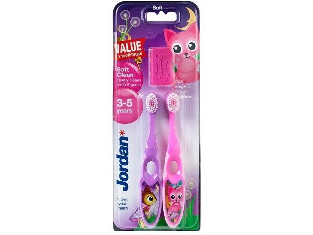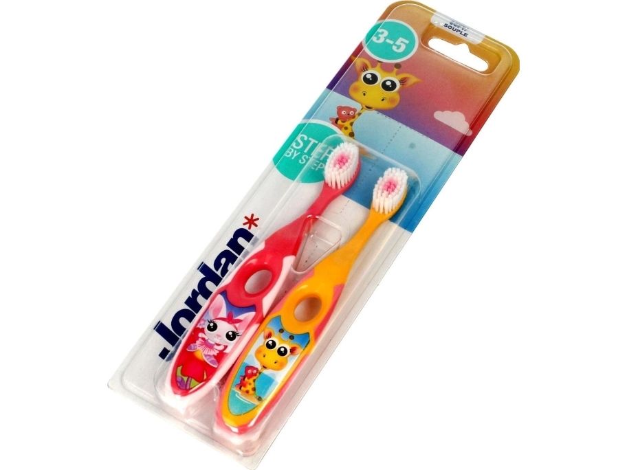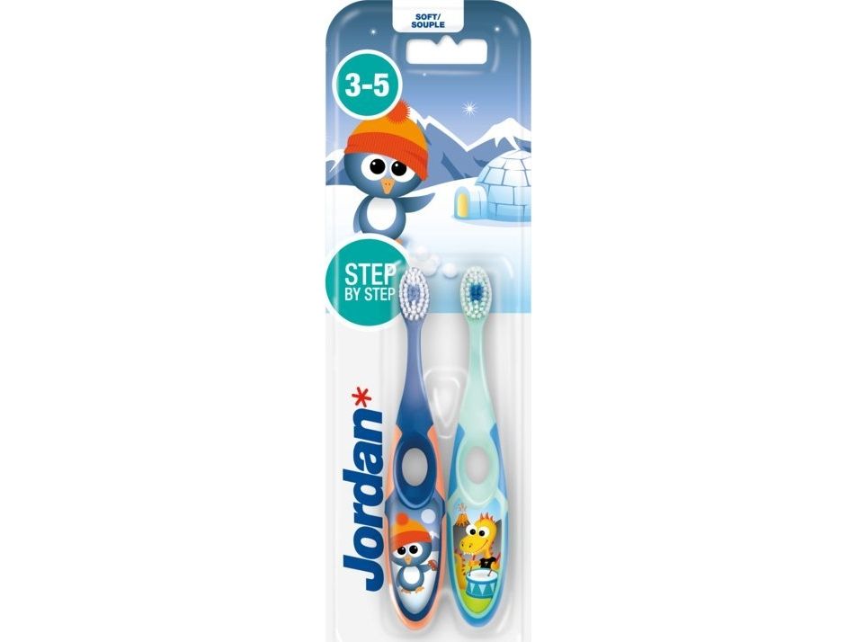 Jordan tannbørste DUO Soft Clean for barn (3–5 år) myk, 1 pakke-2 stk, miks mønstre