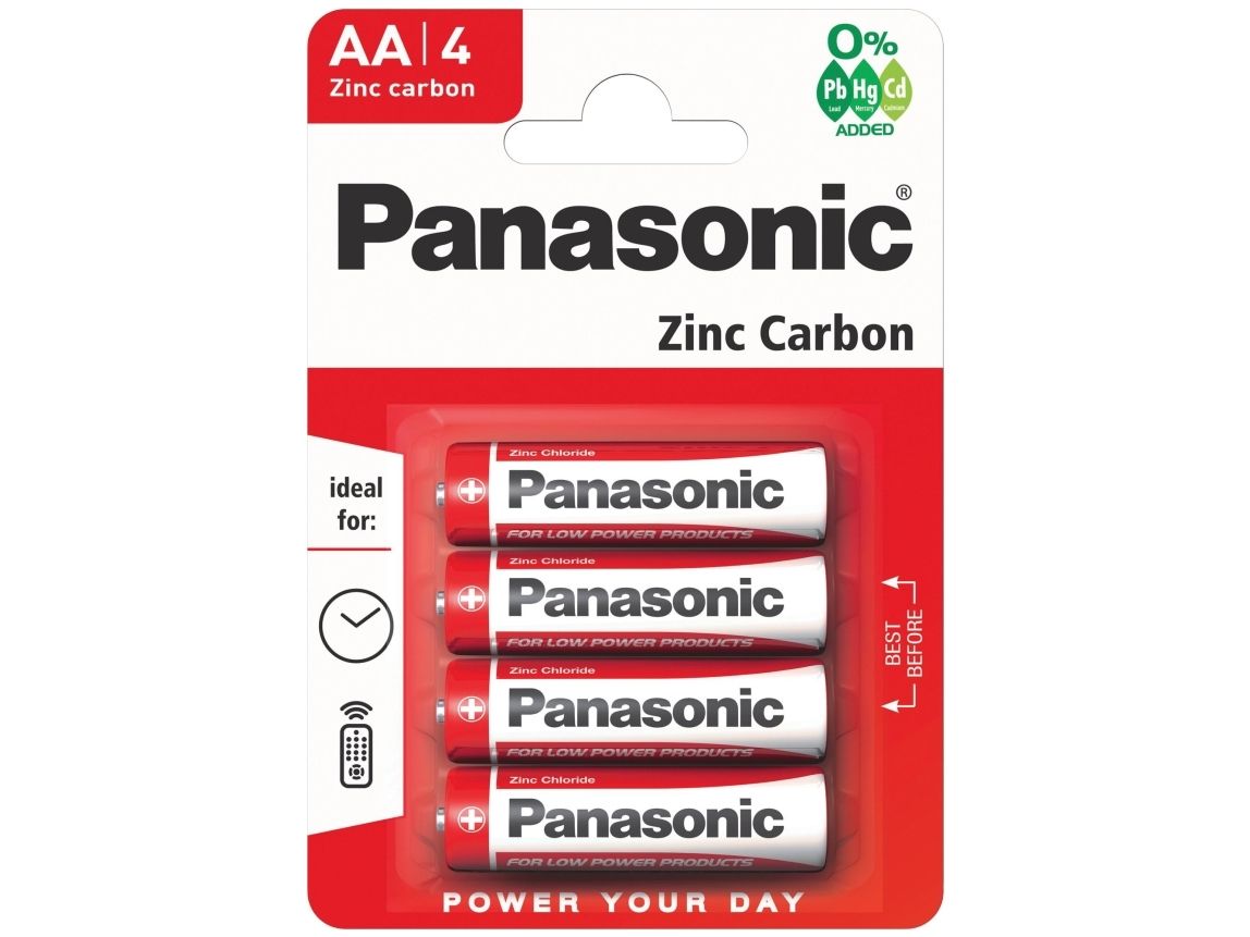 Panasonic Battery, 1.5 V, AA, Zinc Carbon, Raised Positive and Flat Negative, 4