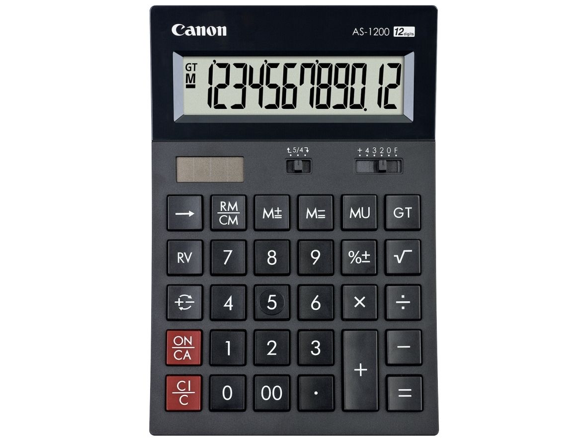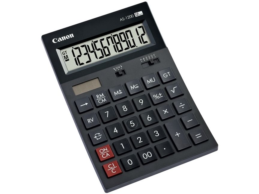 Canon AS-1200 - Skrivebordskalkulator - 12 sifre - solpanel, batteri - mørk grå