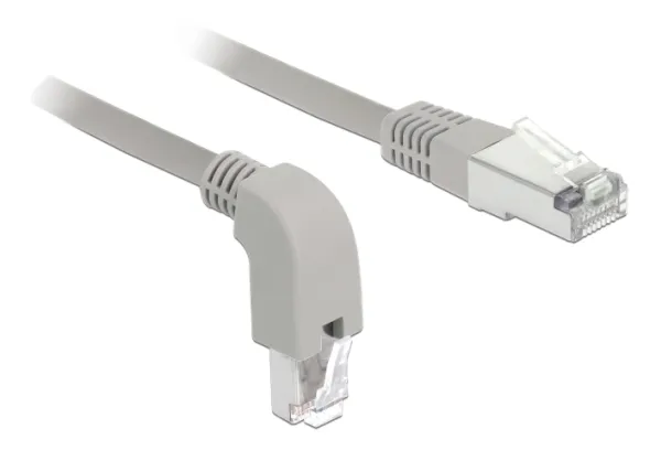 Delock - Koblingskabel - RJ-45 (hann) vinklet nedover til RJ-45 (hann) rett - 1 m - 0.58 cm - S/FTP - CAT 6 - halogenfri, formstøpt, flertrådet - grå