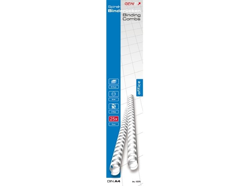 GENIE plastspiralrygg 10 mm hvit - for 65 ark - (25 stk.)