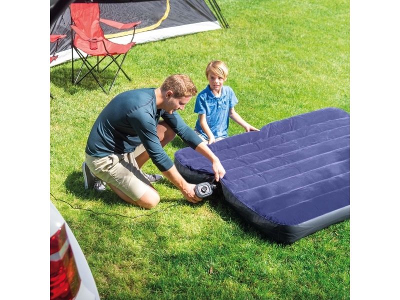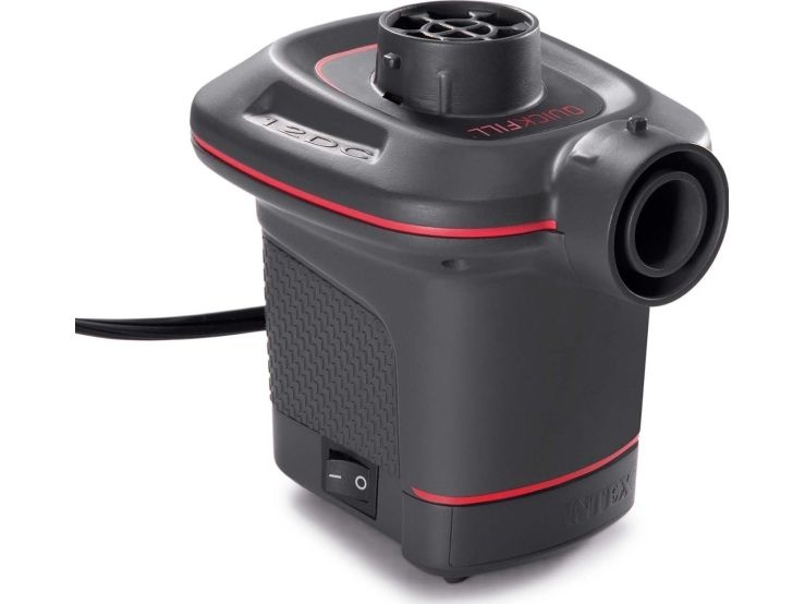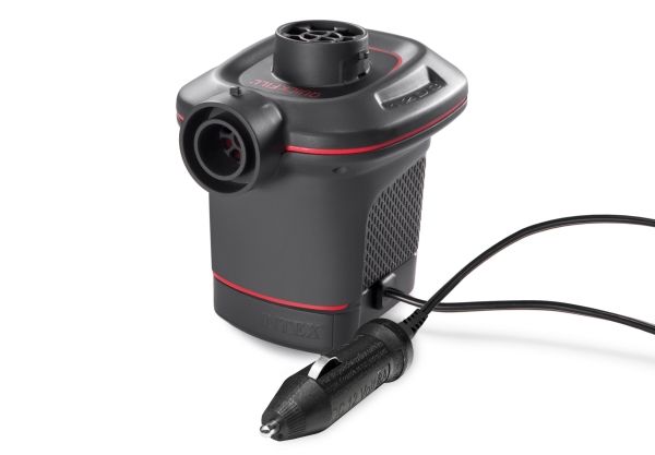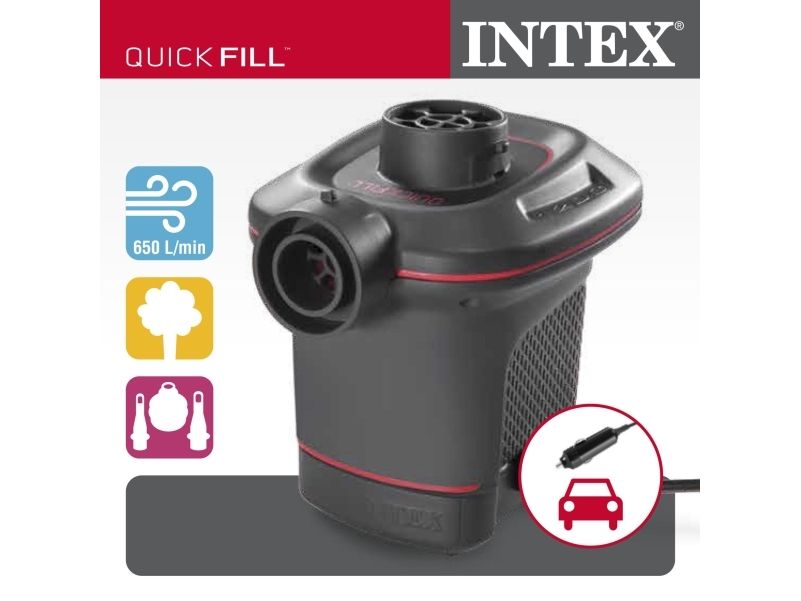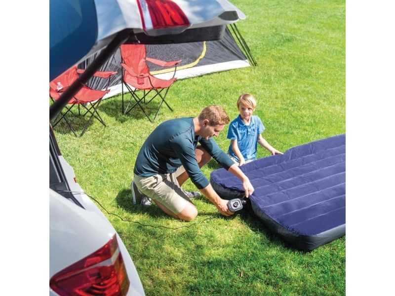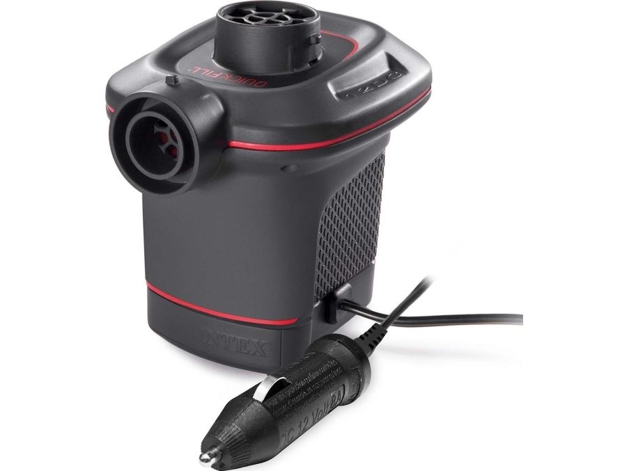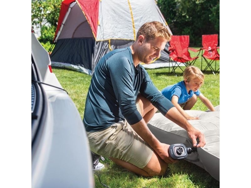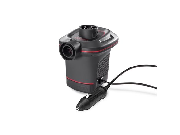 En 12 volt luftpumpe som kan plugges inn i bilens stikkontakt Hurtigfylt elektrisk pumpe for både oppblåsing og deflasjon. Plugges i 12V lighter eller stikkontakt for tilbehør. Leveres med 3 dyser.
