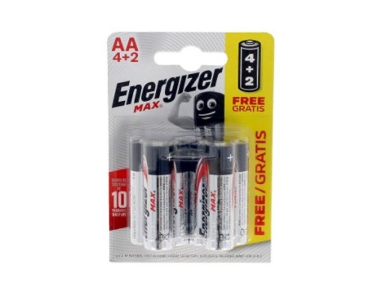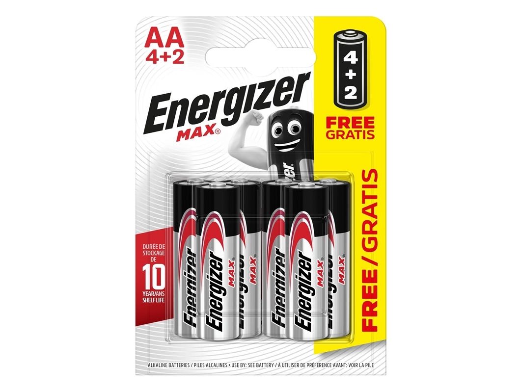 Energizer Max Alkaline AA-batterier, 4 + 2 gratis
