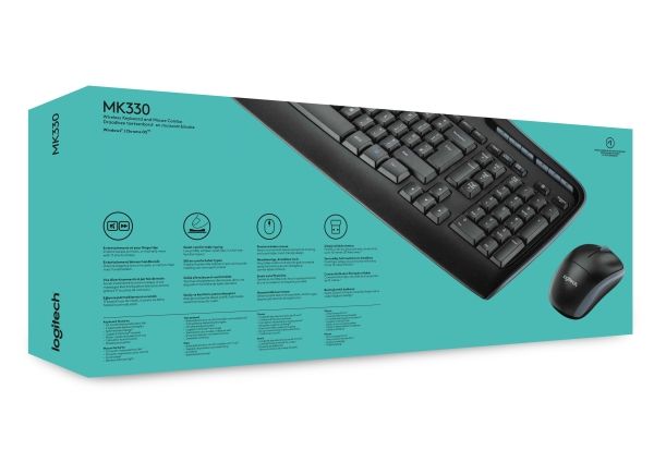 Logitech Wireless Combo MK330 - Tastatur- og mussett - trådløs - 2.4 GHz - US International - svart