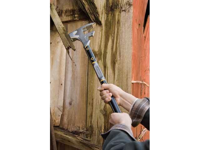 OBS! Denne produktbeskrivelse er endnu ikke blevet oversat til dansk af vores oversættere. Derfor er teksten maskineoversat fra den tyske originaltekst. FatMax PRO Fubar III 30 inch/762mm Universelt anvendelig 5-i-1 værktøj (forhammer, griber til træplader Forskallingsbrædder, måtter og meget mere, griber til finere stemmejern, sømudtrækker, stemmejern Til nedrivnings- og demonteringsarbejde som f.eks. stemme, spalter, bøjning og slag Kulstofstål, smedet i ét stykke til sikkerhed og holdbarhed. Dobbelt inddelte kæber til nemt greb i træstykker og plader af forskellig tykkelse Skråtstillet sømkærv til løft og træk af søm. Struktureret grebsoverflade giver høj komfort og maksimal kontrol, også ved våde hænder. Hærdet stål til beskyttelse mod splinter. Vægt i g: 4260
