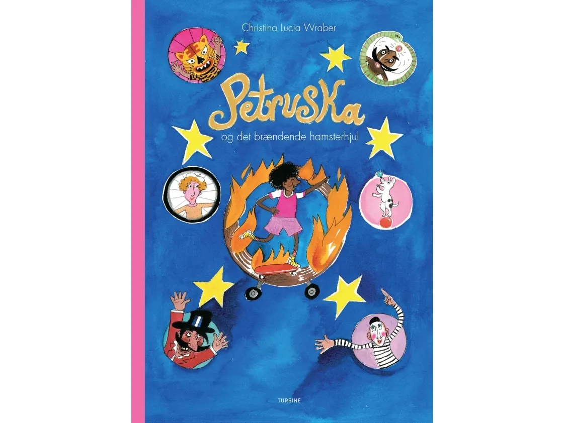 Det er blevet forår i byen, og Petruska synes, det kunne være skønt at gå ud og få en is. Men far har travlt, og mor dyrker yoga, og Petruskas brødre spiller computer, og hun er for lille til at være med. Petruska har fået nok, og selv om hun ikke må, springer hun på sit røde skateboard og suser ud i byen. I høj fart går det gennem gadernes myldrende liv … lige indtil det ikke går længere. Petruska flyver gennem luften – og vupti – lander hun lige midt i Cirkus Badutski! Cirkusdirektøren er meget imponeret, og han beslutter sig for at give Petruska en hovedrolle i aftenens forestilling …"Petruska og det brændende hamsterhjul" er en skøn billedbog om en sej pige, der tager sagerne i sin egen hånd, da hendes familie ikke har tid til hende. Bogen er skrevet og tegnet af Christina Lucia Wraber, der også står bag billedbøgerne “Den gode tæppehandler” og “Pakken”. Christina holder af at lade sig inspirere af sine mange rejser, og til bogen om Petruska kommer ideen fra et ophold i New York – hvilket man sagtens kan se på bogens myldrende illustrationer af byen med gule taxier, små deli’er og et fantastisk persongalleri.
