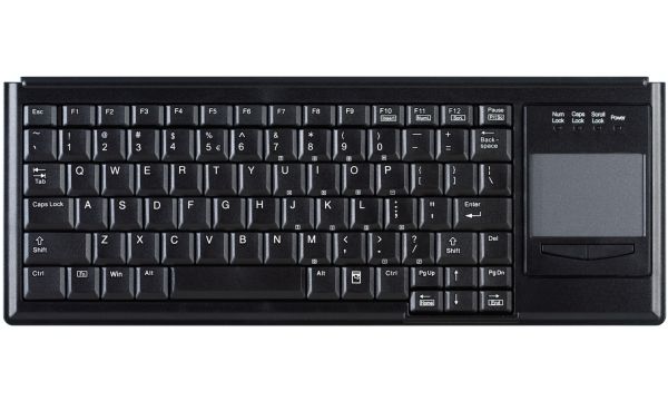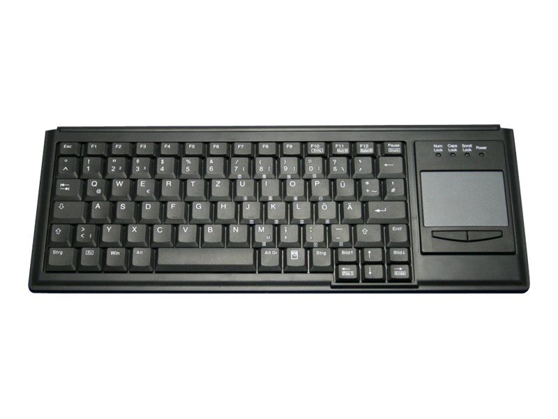 OBS! Denne produktbeskrivelse er endnu ikke blevet oversat til dansk af vores oversættere. Derfor er teksten maskineoversat fra den tyske originaltekst. Kompakt tastatur til bærbare computere Støjsvag, ergonomisk tasteanslag Blød trykpunktbetjening (kort Vandring) Fuld tastebredde, kort anslag Ideal for fyldepen Stor touchpad som musesæt Lav højde (ca. 21 mm) Nem at rengøre Active Key AK-4400-GU-B/US - ultraflad industri-tastatur med integreret touchpad, sort