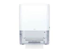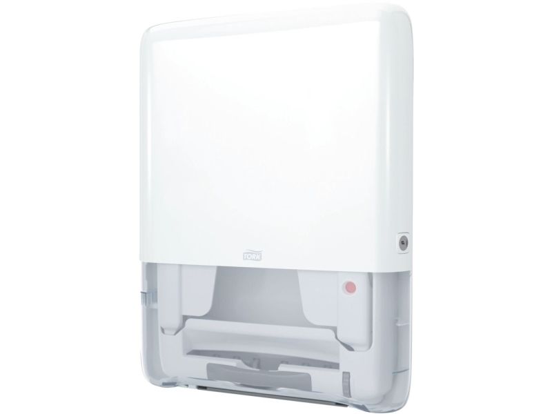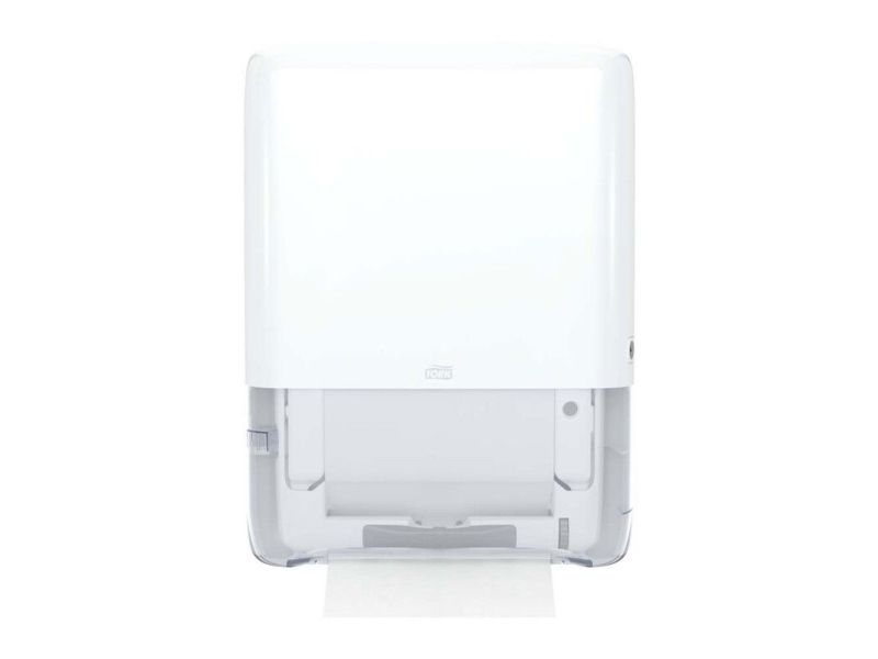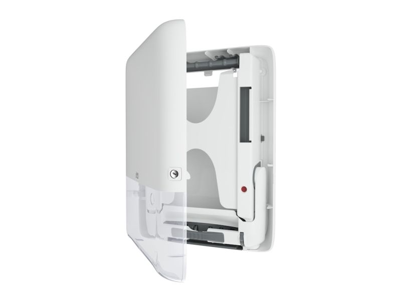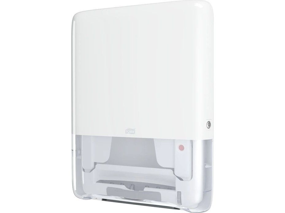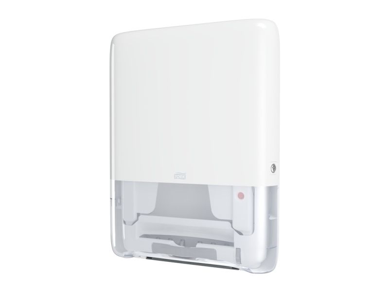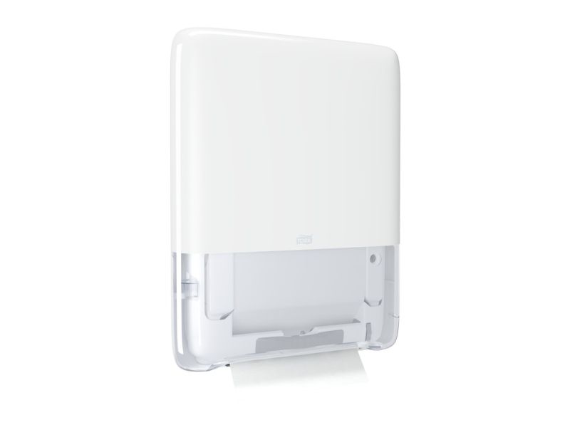 Tork PeakServe® mini-dispenser til Endos™ papirsservietter i hvid H5 Tork PeakServe® giver papir på kun 3 sekunder, så du ikke længere har køerne på papirservietdispenseren i vaskerrummet. Aldrig mere tom håndklædedispenser: Halvér efterfyldningstiden takket være den høje dispenser-kapacitet på 1.230 papirhåndklæder. Spar plads i lageret, på rengøringsvogne og i foldeservietdispenser via de 50 % komprimerede papirbundter. Spar tid - takket være fleksibelt opfyldningssystem kan du blot fylde Tork-foldekarpapirsservietterne op, når du har tid. Uanset om der er tale om papirstop, tom dispenser eller hyppig genpåfyldning med lange ventetider: Kontrol af ofte ofte ofte travle toiletter. Tork PeakServe® Mini-dispenseren til Endos™ papirsservietter giver papirhåndklæder på kun 3 sekunder, har med 1.230 papirhåndklæder en høj kapacitet og halerer dermed om-genopfyldningstiden. Papirserviet forhindrer vores patenterede Endestos™ håndklædesystem. Alt dette i en slank dispenser, der overholder ADA - ideal til små lokaler.
