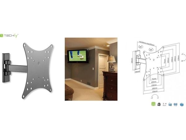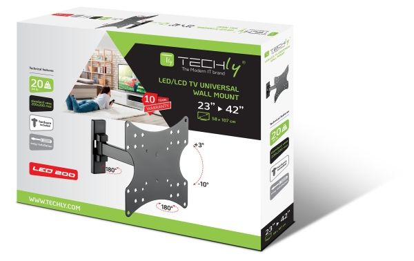 Techly ICA-LCD 2901E, 58,4 cm (23"), 106,7 cm (42"), 75 x 75 mm, 200 x 200 mm, -10 - 3°, Sort