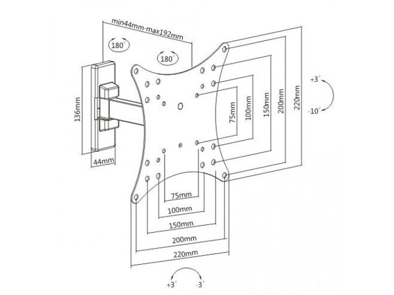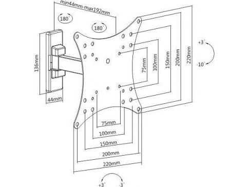 Universal bracket for fixing a LED / LCD TV to the wall; Easy and fast to install, is ideal for home, office and commercial applications