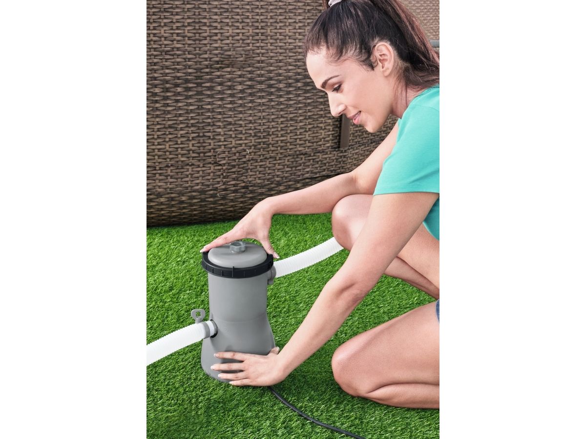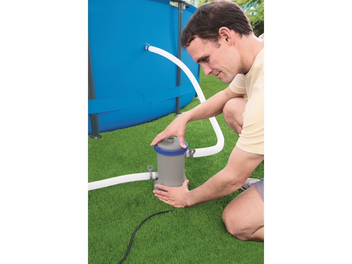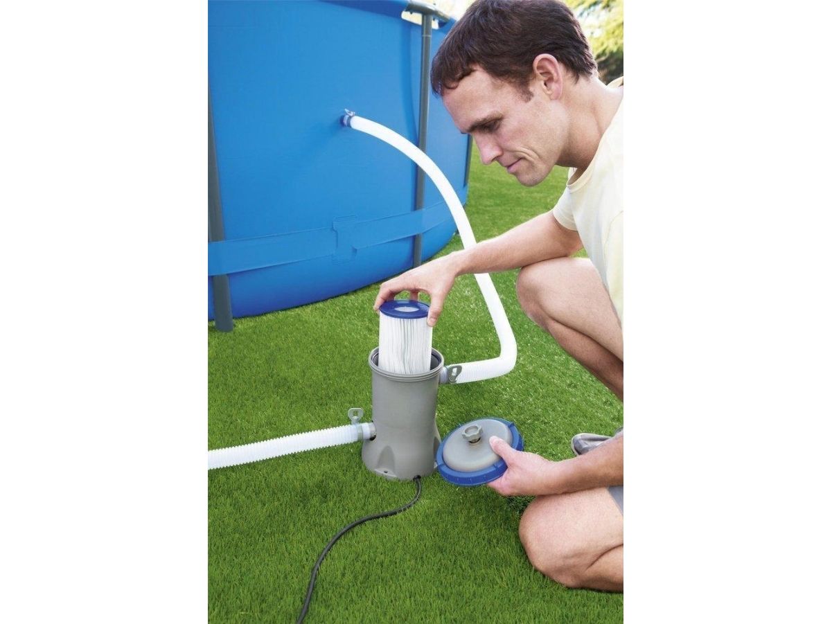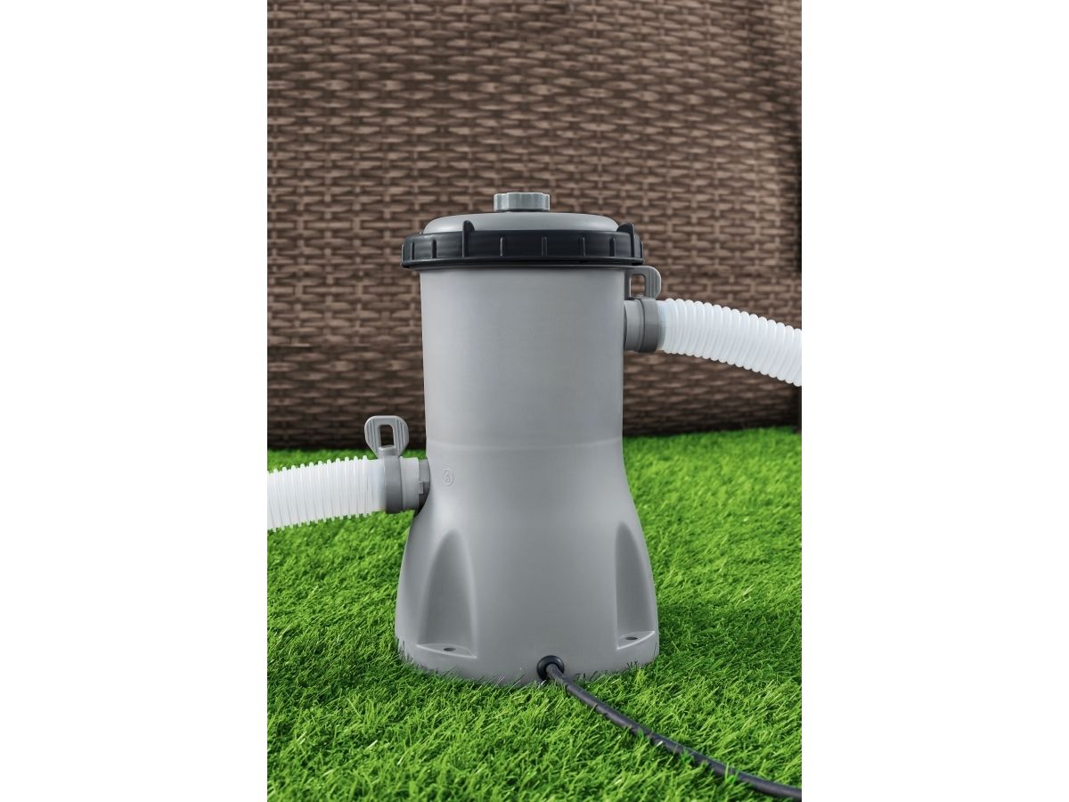 Bestway® 3.028 L filterpumpe er en fantastisk måde for poolejere at holde deres poolvand skinnende rent i sommermånederne. Denne pumpe udøver sin magi ved at cirkulere vandet ud af poolen, gennem et filter og tilbage igen. Med alt, hvad du behøver for at holde dit poolvand rent, er dette Bestway-pumpesæt et must-have! Bestway-filterpumpen på 3.028 l anbefales til brug i pools på 1.100-17.400 l (300-4.600 gal.) og fungerer perfekt med type II-filterpatroner. Gør det sjovt at være funktionel med Bestway 3.028 L filterpumpe - som er kompatibel med næsten alle overjordiske pools, uanset mærke.