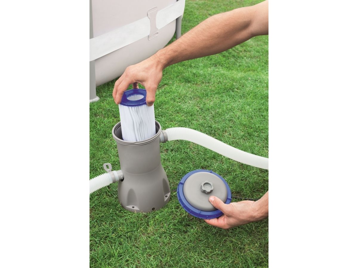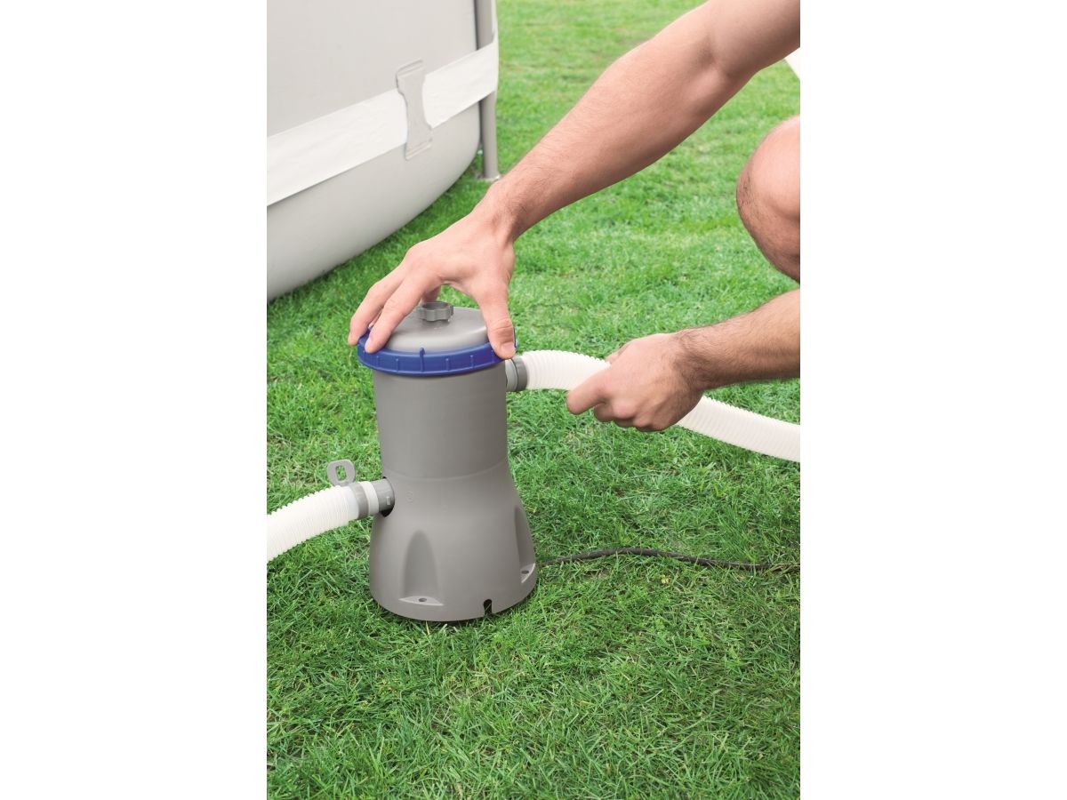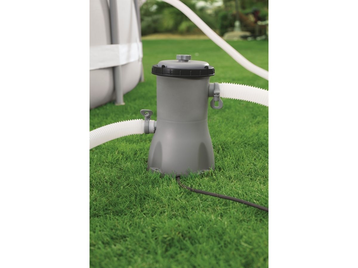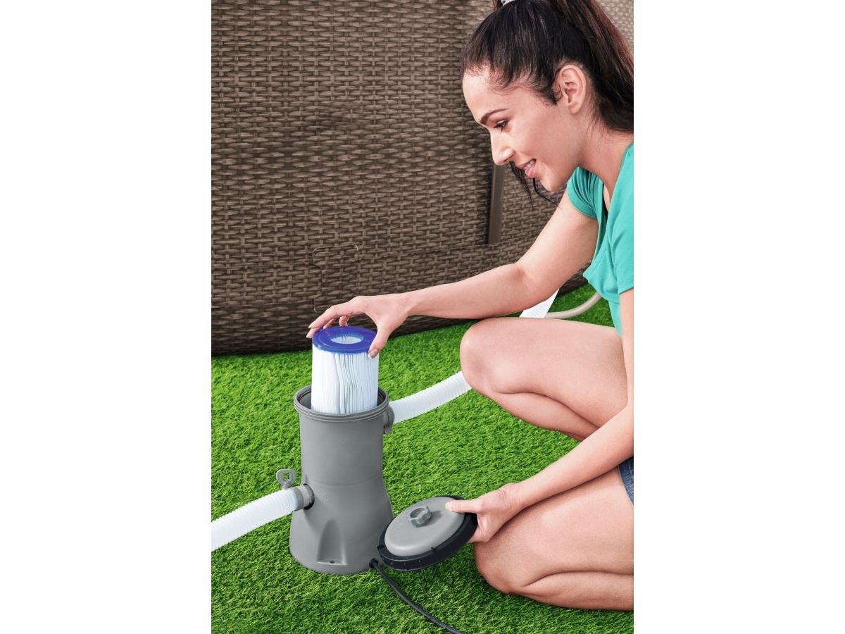 Bestway® 3.028 L filterpumpe er en fantastisk måde for poolejere at holde deres poolvand skinnende rent i sommermånederne. Denne pumpe udøver sin magi ved at cirkulere vandet ud af poolen, gennem et filter og tilbage igen. Med alt, hvad du behøver for at holde dit poolvand rent, er dette Bestway-pumpesæt et must-have! Bestway-filterpumpen på 3.028 l anbefales til brug i pools på 1.100-17.400 l (300-4.600 gal.) og fungerer perfekt med type II-filterpatroner. Gør det sjovt at være funktionel med Bestway 3.028 L filterpumpe - som er kompatibel med næsten alle overjordiske pools, uanset mærke.