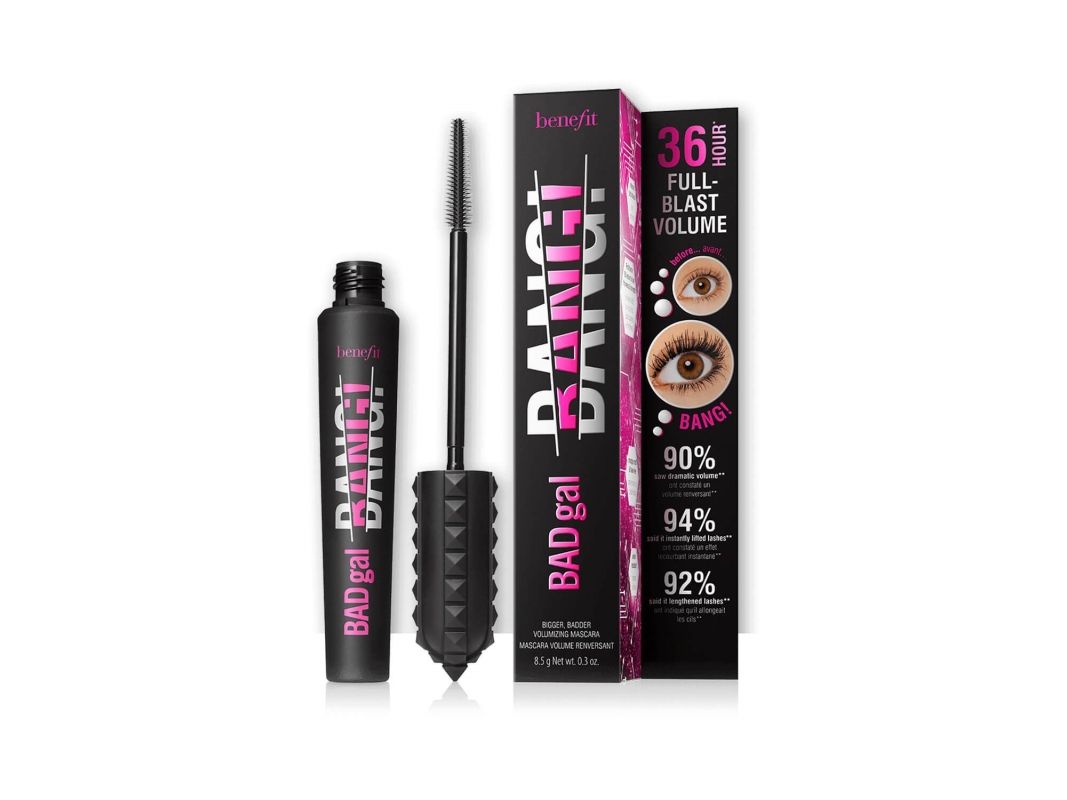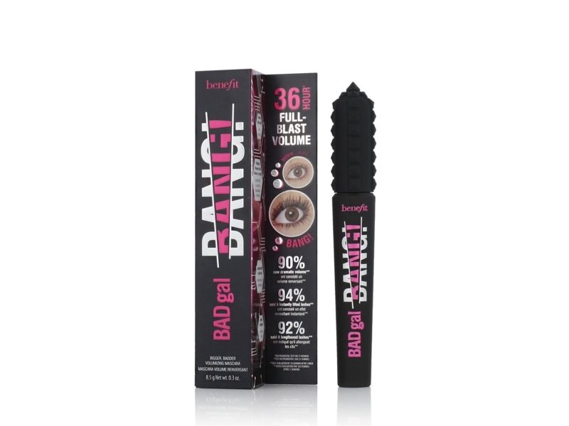 BADgal BANG! 36 HOUR FULL-BLAST volumising mascara creates MASSIVE volume without weighing down lashes. The gravity-defying formula contains aero-particles, one of the lightest known materials, derived from space technology. This innovative intense pitch black mascara layers easily for bigger and BIGGER impact. Its custom big Slimpact! brush is streamlined to reach root-to-tip, corner-to-corner, upper and lower lashes for BIG VOLUME WITH 360° REACH!