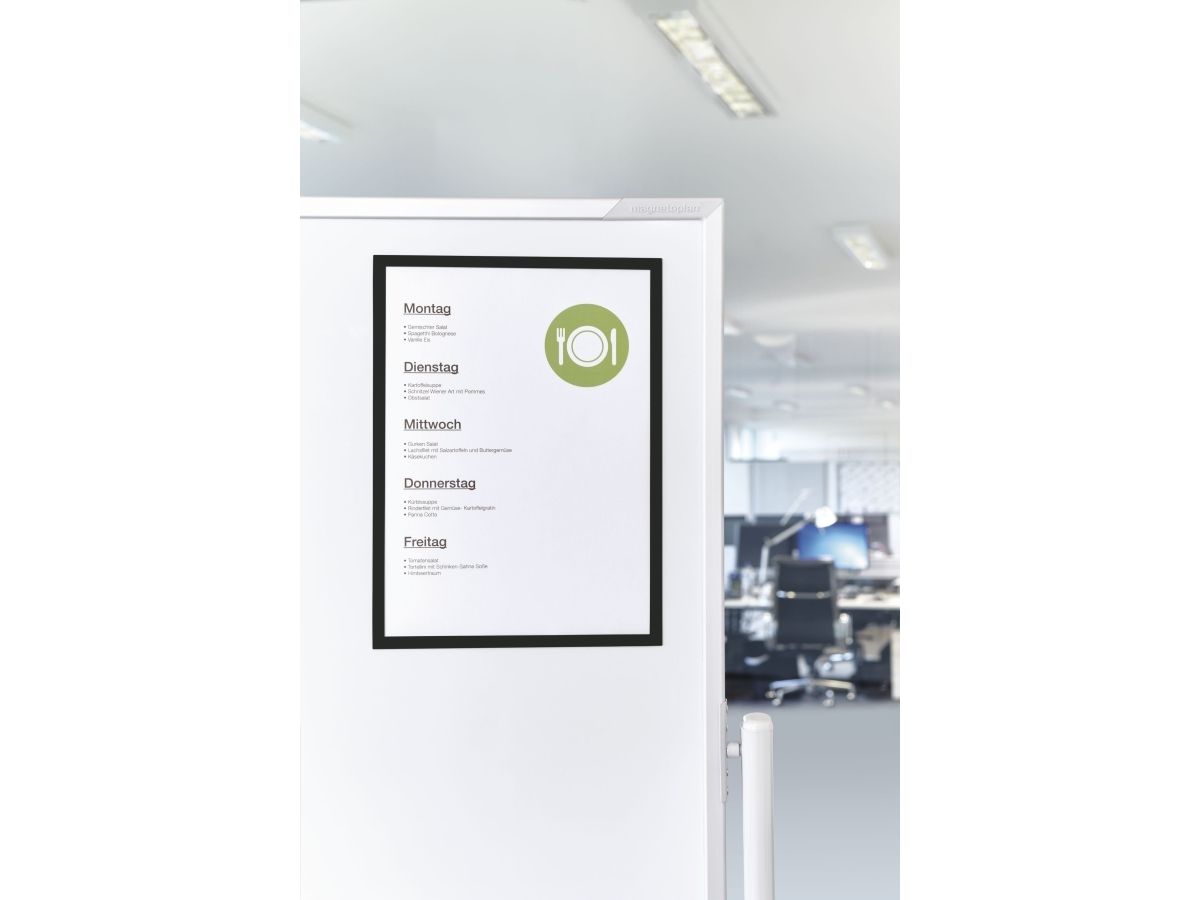 Farvet magnetramme til ophængning af driftsmæssige oplysninger: Til kontor, lager + produktion, ideal også til TQM-paneller.