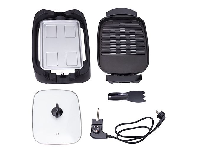 You already know that our product will save a lot of space and reduce the amount of work in the kitchen. Also, it significantly facilitates it, because the set includes a glass lid through which you can control the level of browning of products on the grill. Thanks to the cool touch handle you won't get burned. The temperature adjustment knob allows you to choose five different settings, so you can prepare everything on the grill without worrying that delicate products will burn after a few minutes. The function of maintaining the temperature will be useful during larger meetings, where everyone will like additional portions. The heating plate has a non-stick coating, which will reduce the amount of fat used for frying. However, what deserves the most attention is the fact that our product is equipped with two heating surfaces: flat for people who like traditionally fried meat and corrugated, for fans of the characteristic grill pattern. The high-quality device will help you quickly and conveniently prepare a healthy dinner for the whole family.
