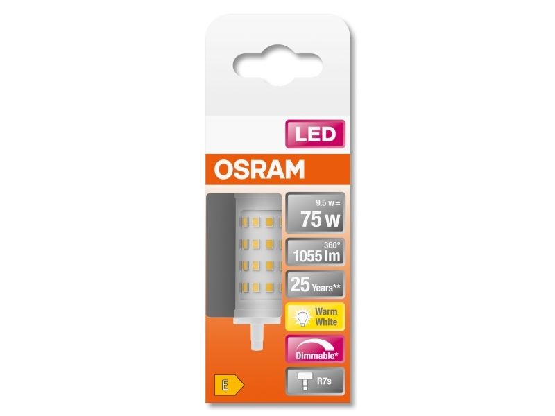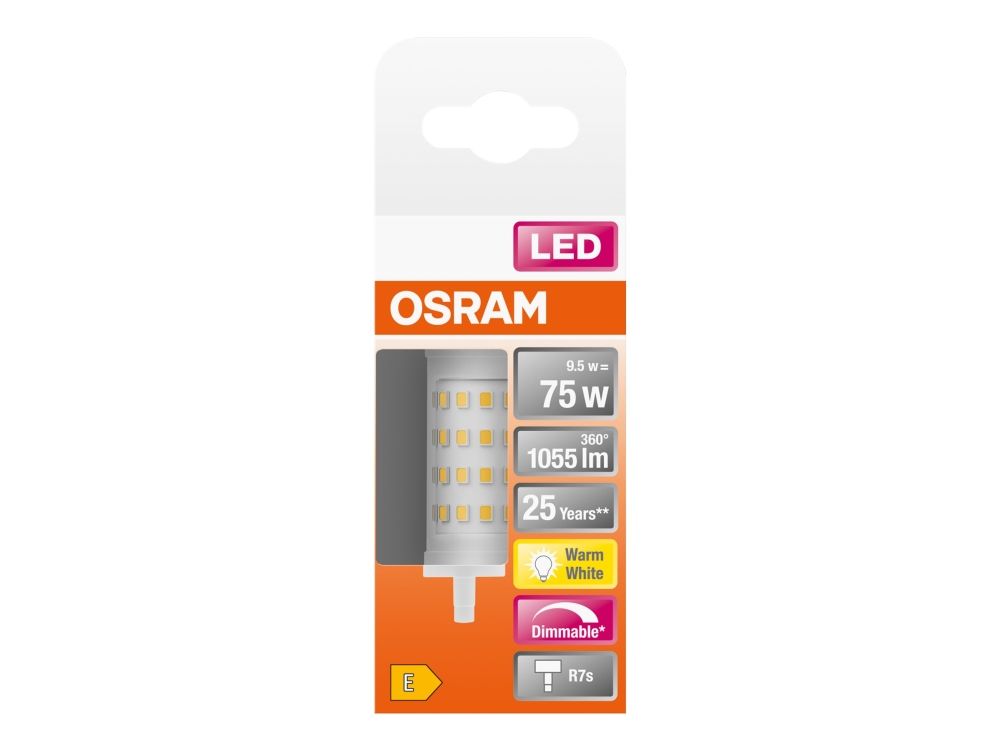 OSRAM LED LINE - LED-lyspære - form: korn - klar finish - R7s - 9.5 W (ekvivalent 75 W) - klasse E - varmt hvitt lys - 2700 K