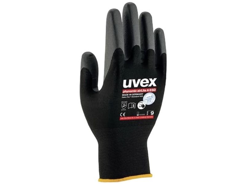 The uvex phynomic airLite A ESD is the lightest safety glove in its class and offers a noticeable difference in wearer comfort. The new assembly glove combines high sensitivity and tactile feel with lightness and breathability, all in one glove. This makes the uvex phynomic airLite A ESD perfect for precision work and handling very small or fine components — and you can still use almost all screens, tablets and mobile phones when you are wearing them.