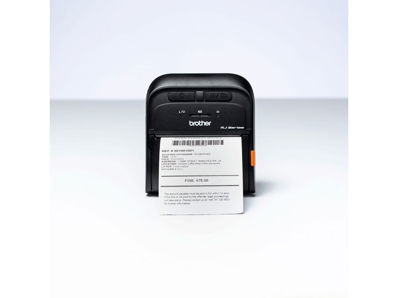 Brother RJ3035B mobil skriver er ideell for utskrift av kvitteringer og billetter. Denne 3 tommers kvitteringsskriveren er lett og kompakt og har en rekke tilkoblingsalternativer. Den integreres enkelt i dine eksisterende systemer takket være de støttede skriverkommandospråk og kostnadsfri programvare utviklingsverktøy (SDK).
