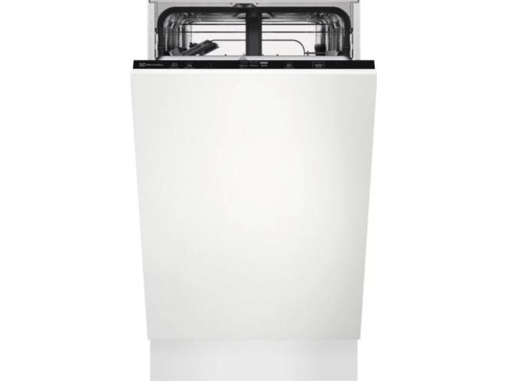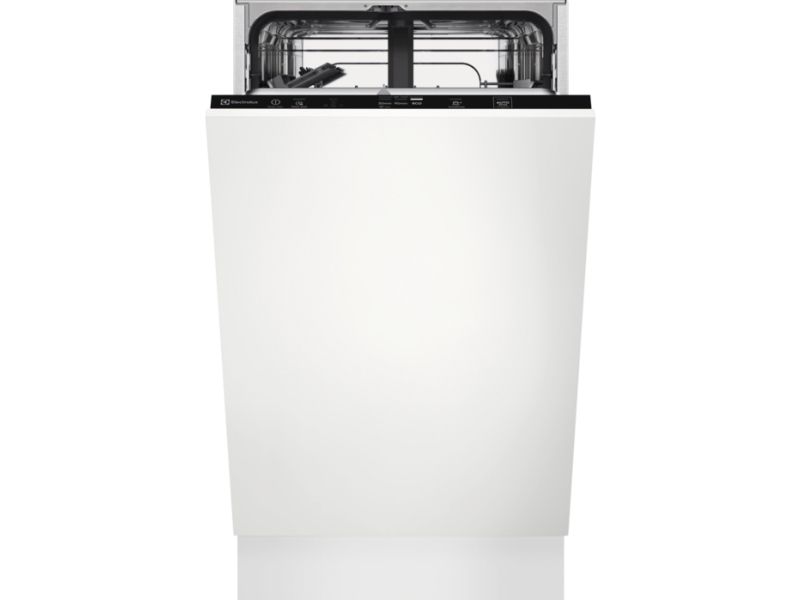 Electrolux EEA22100L. Appliance placement: Fully built-in, Product size: Slimline (45 cm), Door colour: White. Number of place settings: 9 place settings, Noise emission class: C, Noise level: 47 dB. Feet adjustment: 8 cm. Energy efficiency class: F, Water consumption per cycle: 0.778 L, Energy consumption per 100 cycles: 78 kWh. Width: 446 mm, Depth: 550 mm, Height: 818 mm