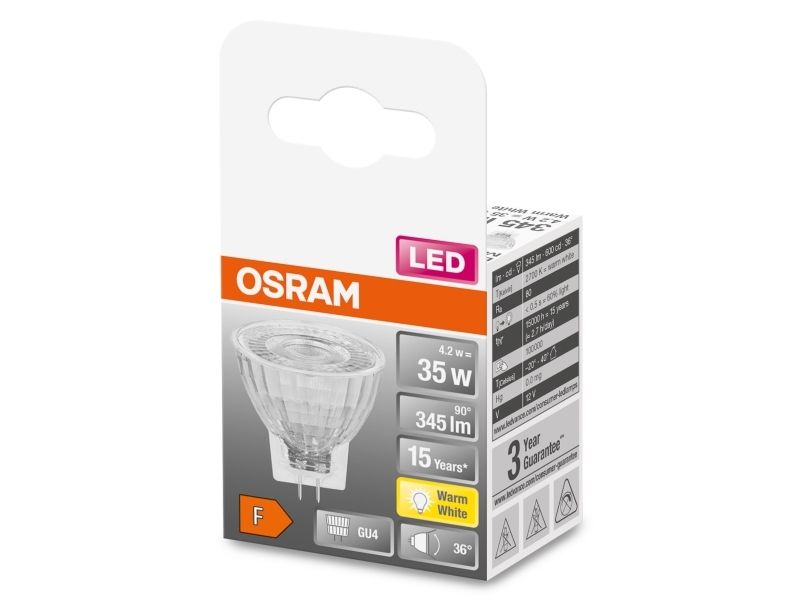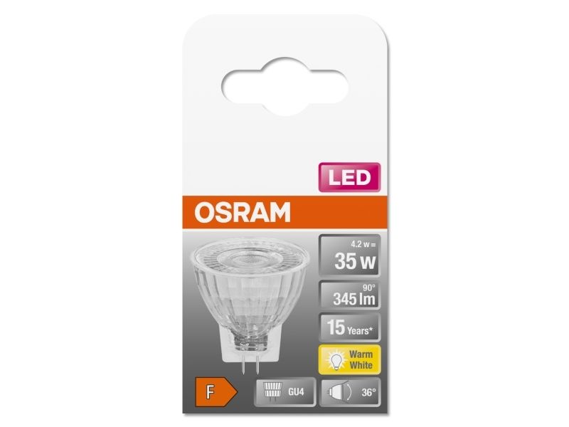 OSRAM LED STAR - LED-pære for søkelys - form: MR11 - GU4 - 4.2 W (ekvivalent 35 W) - klasse F - varmt hvitt lys - 2700 K