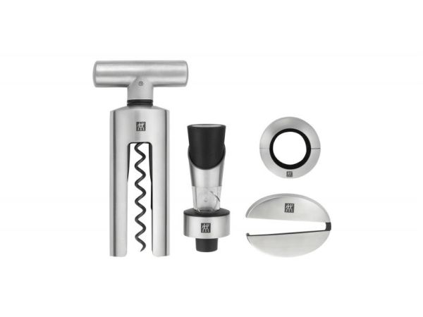 This set includes a high-quality corkscrew, which allows you to remove the cork effortlessly without piercing it. The foil cutter removes the foil sleeve. A pouring spout and a drip ring are also included. Wine lovers will have immense joy pouring fine wine with this ZWILLING sommelier set.