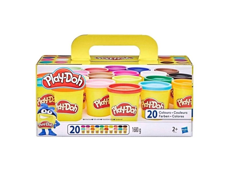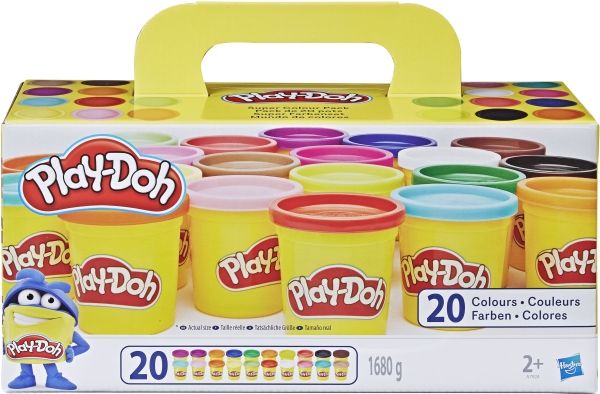 Klem, form, trykk, og lag alle mulige kreasjoner med 20 ulike Play-Doh-farger i store bokser på 84 g. Perfekt for selskaper, klasserom, lek eller kreativ moro når som helst! Hasbro, Play-Doh og alle tilhørende begreper er varemerker som tilhører Hasbro.