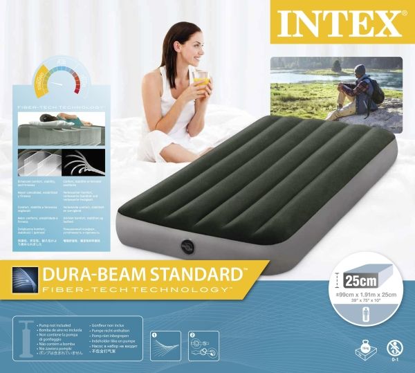Standard luftmadrass med myk overflate til både innendørs og utendørs bruk. Prestige Downy-serien er perfekte senger for både utendørs- og innendørs bruk. Den interne Fiber-Tech-konstruksjonen gir lang holdbarhet og støtte. Den velourlignende liggeoverflaten er behagelig og lett å rengjøre. Madrassen kan brettes til en kompakt enhet, så den er enkel å oppbevare og transportere. Med en 2-i-1 ventil med ekstra bred åpning. Luftmadrassen måler 99 x 191 x 25 cm.