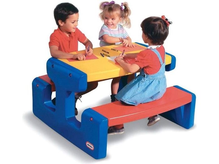 Stabilt bord- og benksett. Nå kan de små leke, spise og kose seg i det fine junior pikniksettet fra Little Tikes som er klare primærfarger. Sammenhengende bord og to benker gir god plass til maksimum 4 barn, sikrer stabilitet og kan brukes både inne og ute. Mål: 74x 80, bord 46 cm høyt. Velegnet til barn mellom 1 ½ år til 6 år.