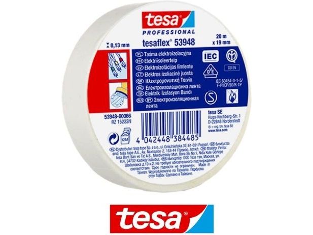 Tesa Elektrisk isolasjonstape 5000V PVC 20m 19mm hvit