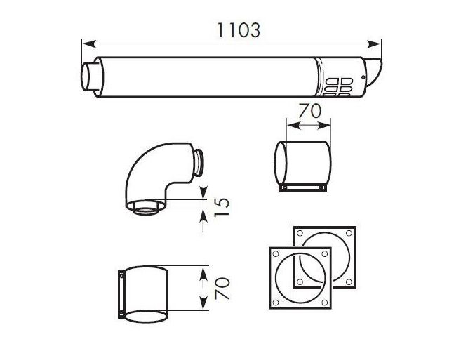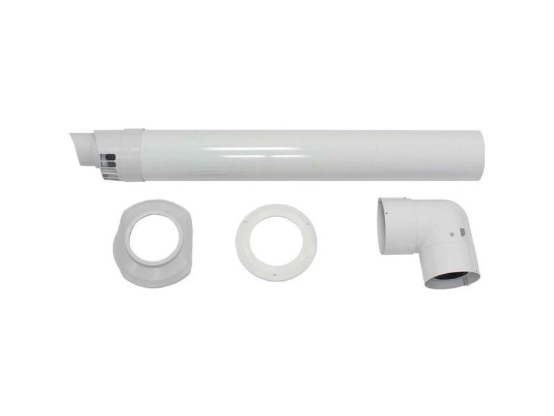 Vaillant væg-/taggennemføring PP 80/125 mm vandret 303209 Taggennemføring Brenner vandret luft-/udstødningsgasføring, til rumluftuafhængig drift, koncentriske luft-/udstødningsgasrecirkulation (80/125 mm PP), som kan anvendes ved skråtag med en hældning på 30-60 grader, bestående af: Vandret taggennemføring med lufttrørspændebånd, bue 87 grader med lufttrørramme, 2 vægrosetter, hver en rørklemme luft/udstødningsgas