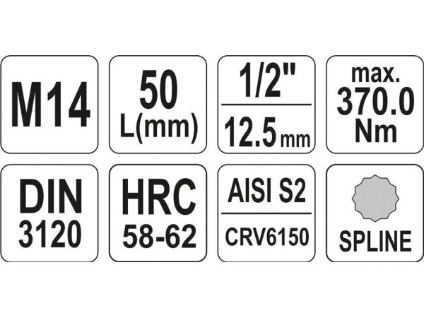 Yato Spline skaftsokkel 1/2" M14 x 55 mm (YT-04345)
