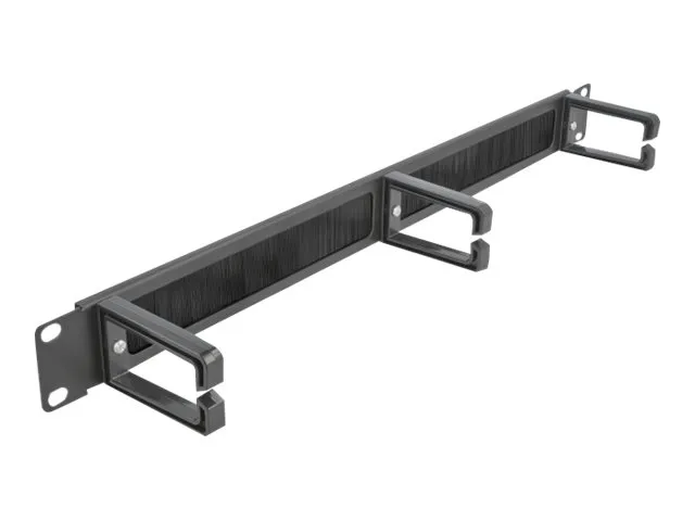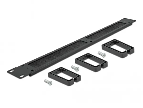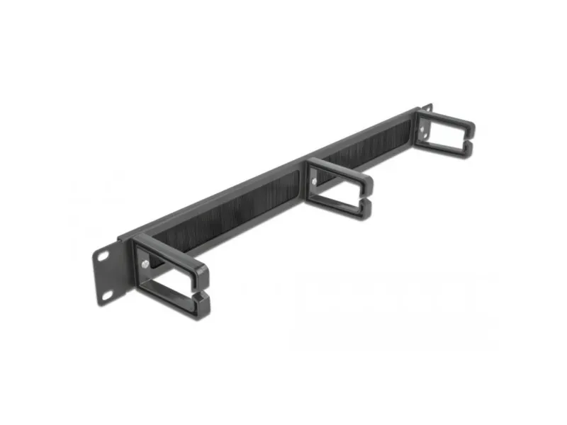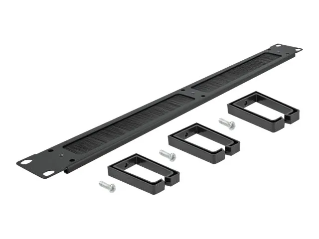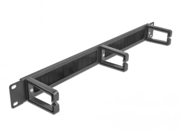 Delock Cable Management Brush Strip with 3 hooks - Styringspanel for rackkabler med børste - svart - 1U - 19"
