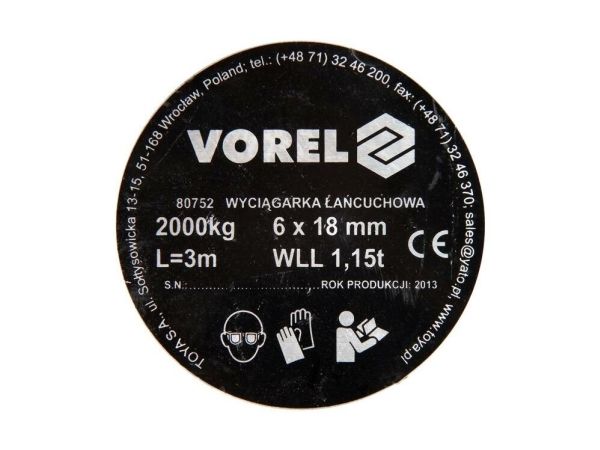 VOREL Kjedevinsj, 2000 kg, stål, gul, 80752