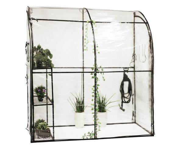 HORTUS plastik drivhus til placering op ad væg/husmur. Drivhuset er udstyret med 2 lynlåsdøre og 2 luftudtag med insekt net. Disse er placeret i hver ende af drivhuset, så indgang og udluftning er mulig fra begge ender. Stel fremstillet i lakeret metal og samlestykker i plastik. Overtræk fremstillet i kraftig plast. Nem montering uden brug af værktøj. Hvis man ønsker at nedtage sit drivhus efterår/vinter er dette også en smal sag.