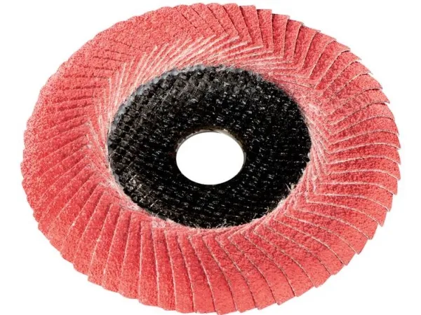 Specially shaped flap disc with lamellae that are rounded off towards the outer edges. Thanks to the special design it is particularly suited for processing fillet welds; making faster and more efficient processing possible; also suitable for surface grinding Very high material removal with very high tool life thanks to the use of ceramic grain. Cool cut for materials with poor thermal conduction For grinding of steel and stainless steel. Ideal for extreme grinding jobs like processing high-alloy steels, titanium alloys, nickel-based alloys as well as chromium and chromium-nickel steels, brass and bronze thanks to high load capacity. Uniform grinding result, comfortable grinding with only low vibration