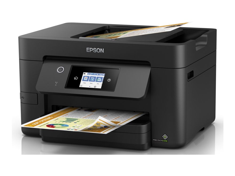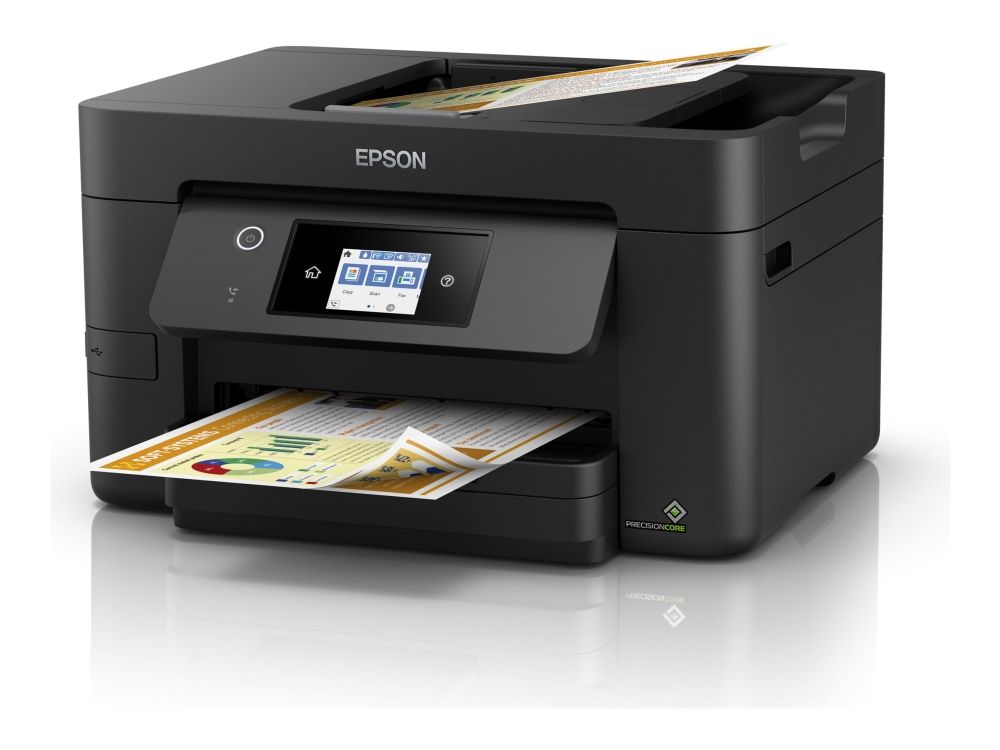 Tenk stort med denne høykvalitets flerfunksjonsskriveren med én- og tosidig utskrift, skanning og faks opptil A4. Du får jobben unna med utskriftshastigheter på opptil 21 sider/min i svart-hvitt og en 35-arks automatisk dokumentmater (ADF) for A4. I tillegg får du kostnadsbesparende blekk og fleksible løsninger for trådløs tilkobling som Scan-to-cloud.