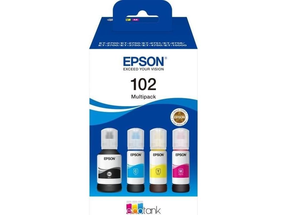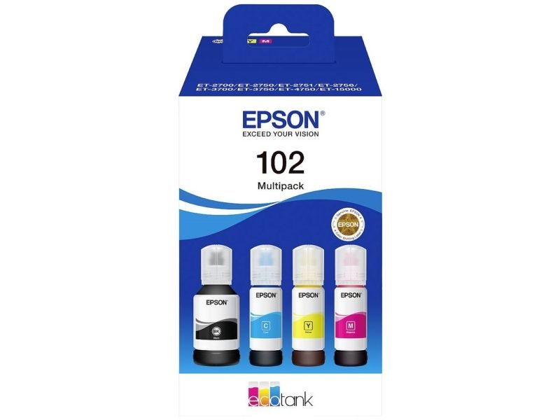 Epson 102 Multipack - 4 pakker - sort, gul, cyan, magenta - original - blækpatron - for EcoTank ET-15000, 2750, 2751, 2756, 2850, 2851, 2856, 3850, 4750, 4850, 4856