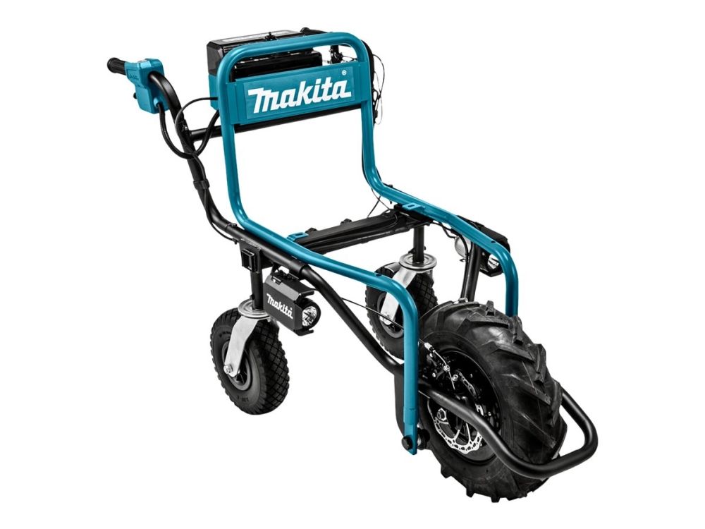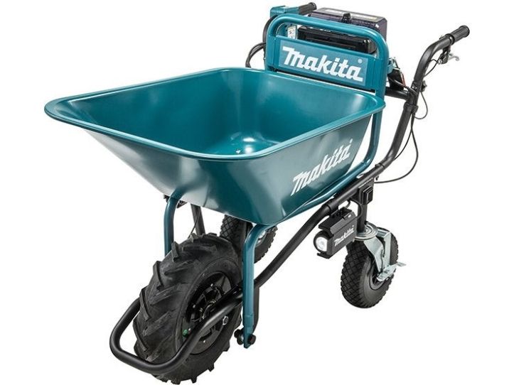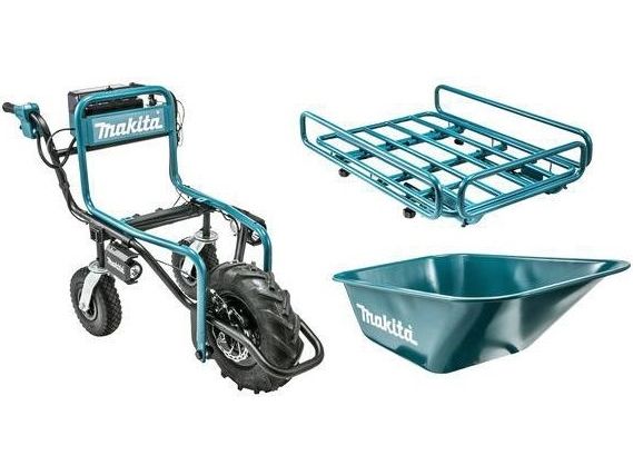 The battery-assisted 18V LXT wheelbarrow is a great tool for worksites, farms and holiday homes. Two speeds, reverse and brake. Metal bucket and flat bed pipe frame as accessories.