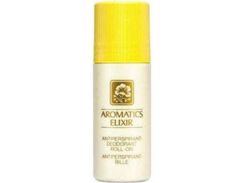 An anti-perspirant deodorant scented with Aromatics Elixir in a roll-on bottle.